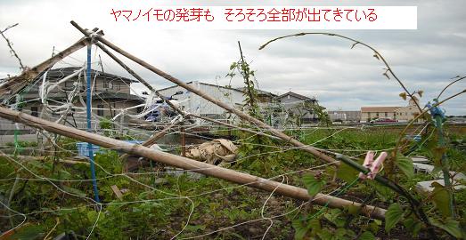 5月27日 ヤマノイモの発芽もほぼ 全部が発芽してきている ok