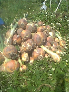 なんだか色々とバタバタしてて全くここの更新をしてませんでした。畑も週末のちょこっとした時間に作業するだけで、去年のように毎朝出勤前に様子見に行けるほどの余裕も無い状態です。えっと、思い出しながら書いていかなきゃ。ゴールデンウィークに、ナス・トマト・ピーマン・カボチャの苗を植えてトウモロコシ・黒豆の種と生姜を植えました。家の裏のプランターに、プチトマトとキュウリも植えました。5月27日に、玉ねぎを半分収穫半分だけなのに家の裏の干し場所が埋まるくらいの収穫に驚きです。空いた畝に、サツマイモ(紅アズマ)を10本植えました。玉ねぎの残り半分を収穫したらそこもサツマイモを植える予定です。イチゴは、毎週順調に収穫できていましたが、今日の収穫はかなり減ってきました。サヤエンドウも半分くらい枯れてきて終盤ですね。グリーンピースも同じく半分終了です。完全に枯れてから種を採って来年また蒔きたいと思います。2月くらいに蒔いて放置していた大根が塔立ちしてだらしないので1本抜いてみました。人参くらいの大きさで、大根おろしにしかならないと思って夕方擦ってみましたが、スジだらけでただの根っこになってました。仕方なく次回全部撤去決定。今後の予定として、・玉ねぎ&ホワイト六辺ニンニク収穫・サツマイモ苗植え・サヤエンドウ&グリーンピース種採り・イチゴ一部撤去&ランナー伸ばし・ゴーヤ&オクラ種まき6月も忙しくなりそうです。