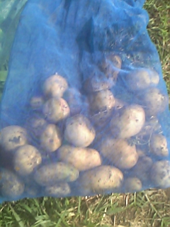 このところ雨が降ったりやんだりの変な天気続きで畑に行くタイミングがつかめずにいます。今日も朝からいい天気と予報では言ってたのに、昼頃通り雨が。。。今日は、仕事が当番だったので夕方から畑に行きました。隣のおじさんがジャガイモを収穫していて、一輪車に山盛りでした。それをみて、うちも試し掘りをしてみました。キタアカリとメークインを半々植えていたのですが、両方2株ずつ掘ってみましたが、なかなかの出来具合でした。来週、家族みんなで大収穫祭をしたいと思います。メモ:グリーンピース撤去・種取り そこに堆肥混ぜ済
