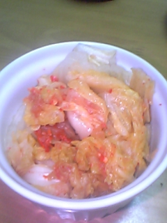 今日の晩御飯にコレが出てきました。自家製キムチです。 もちろん白菜も自家製。色目は市販のより薄いですが、味は市販と変らない美味しさでした。まだちょっと浅漬けなので数日したら本格的な旨味がでると思います。ごはんを思わずおかわりしちゃいました(^O^)