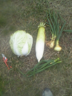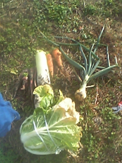 今日、新年初の畑に行ってきました。年末に一度行ったきりで10日ぶりくらいです。流石に寒い季節だけあって畑の野菜はみんな元気がない感じです。★今年最初の収穫★いつもの面々ですw白菜はエイリアンの卵みたいになってますが、中は綺麗に結球してます。晩御飯にお鍋で食べましたが甘みが増してすごい美味しかったです♪ニラって冬の間枯れるんですね。一冬越してから収穫可能ってこういうことなんでしょう。