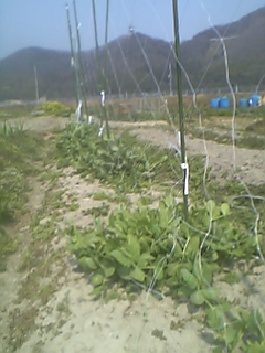 この週末は、久しぶりに家族総出で畑にいきました。暖かく天気がよい日が続いたので、雑草が一気に伸びてえらいことになってました。一面緑の絨毯ってくれいでww親が草を刈り取って、子供が集めて山にしてくれましたが、子供の背丈になりそうなほど草が積みあがりました。イチゴに花が咲いていましたそろそろ取り除けネットをしないといけないですね。エンドウ豆も花が咲いていました。サヤエンドウはこのように花が咲いてるのですが、グリーンピースはまだつぼみもなしです。ついでに白菜も花が咲いてましたww今日は、職場の駐車場脇でワラビがたくさんでてきてました。さらに昼休みに会社の裏のハウスの片隅でカボチャとピーマンの苗作りの種まきをしましたwポットを衣装ケースに入れて、衣装ケースを発泡に入れて、発泡を小型ビニールハウスをハウスに置いてます。ロシアの人形みたいな感じですな♪