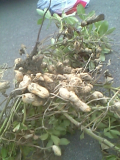 今日は代休を取ったのでお買い物にいきました。帰りに畑に寄って、葉っぱの枯れてきた落花生の中から一番小さい株を試し収穫しました。やはりあまり元気の無い株だったので実の着きはよくないですが、実はちゃんといい大きさに育っていました。さっそく夕食に茹でて食べました。関西では(たぶん千葉以外では)生落花生なんて口に出来るものでないので久しぶりに食べる味に秋の実りを感じました。