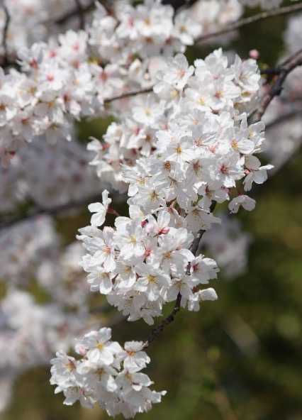 満開の花で、枝が いい具合に しなっています。