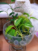 みなさま、ありがとうございます ペットのブログ・ランキングで、初めて1ページ目に表示されました わたしとしては大躍進ですぅ(涙☆) これも、みなさまのおかげでございます。まことにありがとうございました ところで、きのうから雨が降り止まず、きょうはお客さまもチラホラ 体調もおもわしくないので、しごともはかどりません そこで、思い切って、休養ヽ(*^^*)ノ 休養といっても、お店の歩みを止められないので 365日出勤の私の休養は好きなことをさせてもらうことなんです(*^^*) 好きなこと 土いじりです(^^; 1ヶ月以上前に買ってきておいた小鉢を植え替えなければ ならないのに、ずっと置きっぱなし それを、あれやこれや継ぎ足して できましたぁ(^^)v お店をキレイにすることは仕事の一部ですから 堂々と休養&土いじりをさせていただきました そして、ブログ・ランキング1ページ目登場のニュースとあわせ リフレッシュできた、いい一日を過ごさせていただきました ありがとうございましたm(_ _)m 明日からの土日 勉強してきたばっかりの大泉と一緒に 気持ちのいいお買い物をしていただけますよう 接客にいそしみます あ! でも、いま、みたら、落っこちそう 一票お願いいたしますぅぅ(21:40) ブログランキング 一票お願いします♪