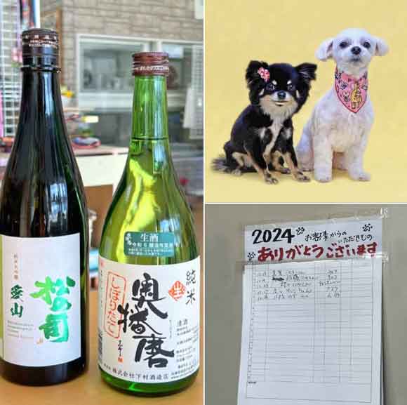 ◆降ってくれましたwおととい「美味い酒がのみたぃぃ」とSNSにつぶやいたら昨日トリミングのKさまが2本お持ちくださいました(*^^*)瓶の間に写っている白と黒のわんこがゆず・あん 2017年生まれの同居犬二人はその年からホテルやシャンプーをご利用くださって たびたびお菓子やたまにお酒をくださいます(右上は7歳誕生月のお祝い写真)きのうの書き込みを見たわけではないでしょうが以心伝心は年の瀬に似合います よく頂き物をします 感謝を忘れないようドアに掲示していますみなさまにもサムシングが降ってきますように♪◆もういくつ寝ると..初売り準備が遅れがち あせあせわたわたそれでもラーメン食べたくて味噌野菜タンメンさて今日からペットホテル繁忙が始まり 今日2頭明日3頭明後日5頭と倍々何より事故なくアクシデントなく業務がおくれますよう(祈Wパンデミックという言葉を耳にします おまけに薬が大ふそくなんだそうですね むむぅ..おそろしやマスクに ノドうがいに 鼻うがい 睡眠 滋養栄養 免疫増進ホテルがつづきスタッフが休みの正月明けまで気をぬけませんそのため帰ってきてからノドうがい鼻うがい「数え日」お正月までを数えるのではなく ペットホテル繁忙が無事に済ませられるまでの日です◆18歳のトリミングただいまアルくんのシャンプー グルーミング トリミングをしています当店ブログのカテゴリーに<高齢・老齢犬のシャンプーポリシー>を載せていますその他・ハバナデートリミングご利用の説明・トリミングご利用に際してのお願い「はい ございます♪」1割増し商品券(2万円まで)きのうお越しの常連さまにお尋ねいただきました◆店休..1/1~5(日)◆ペットホテルは通年稼働◆トリミング・シャンプー部門1/6開始 ■年末謝恩愛犬petitオヤツ進呈中■好評カレンダー残部席僅少 ◇初売り 1/6より・愛犬オヤツ製品版進呈(数量限定)・1割増し商品券(2万円まで・全品10%OFF(11.12.13の3日間、ホテル・トリミング除く)・トリミング・シャンプーご利用で 肉球クリーム塗布サービス(1月末まで) よろしくお願い申し上げます店主敬白■Have a nice dayから店名をいただきましたハバナデーはペットにいいことをポリシーに2024年春22周年になりますフードのご用命やお問合せはココをクリック ■地図をクリックすると拡大します 地下鉄「長町南駅」西3出口より徒歩5分★★★★★★★★★★★★★★★★★★【幸せみつかるPetshop】ハバナデーhttps://itsumo.dog/habanaday/contact仙台市太白区鹿野2-16-16-1F tel022-246-8871OPEN 9:00~19:00(水曜定休)事業者/第1種動物取扱業取扱責任者 岡崎行雄仙台市(H23健保動)130048販売,49保管登録H23,12.13 有効期限H33.12.12★★★★★★★★★★★★★★★★★★