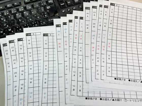 承り一覧を10月、11月、12月分まで作りました
