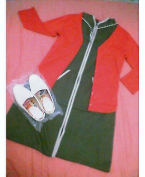・カーキのフード付ワンピース