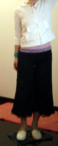 ●ふくらはぎの隠れる半端丈(裾フレアー)は足首が細く見える。