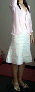 ・白のデニムフレアースカート(L'EST ROSE)