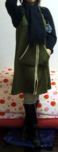 ・カーキのフード付ワンピース(N/B)