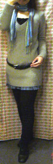 ●グレーのVネックニットチュニック(FUNNY COMPANY)