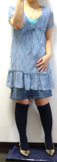 本日の プーペちゃん は、青ワンピに黒タイトでございます。