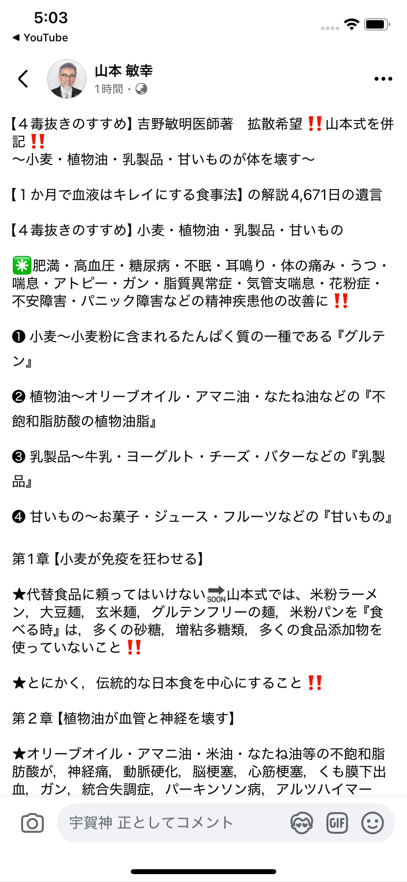花粉症を治すには何かを食べなければいいんです。僕の場合は肉類、牛乳、乳製品、魚介類をやめました。これは花粉症を治すためではなく、尿酸値を下げるためでした。そしたら花粉症も治ってしまったのです。僕の場合、何を食べなくなったから治ったのかはっきりしません。牛乳、乳製品だけをやめたら治った、という人もいますね。