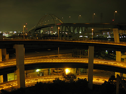 今日は結構ハードな1日やった・・・朝の8時半からバイト行って、そのうち昼からの5時間はずっと店の外の窓ガラスをふいてた。30分外で窓ガラスをふくだけで喉が渇いてきて、熱中症になるんちゃうかって何回も心配した;;んで何とかバイト終わって、家帰って一休みしたあとは今度はIKEAに買いに行きたい商品があったから自転車で行った^^家の近所には渡し船の船着き場があって、今までそれに乗らずに大正まで遠回りして行くか、妙に桁下の高さが高い橋を渡って行くかで行ってたけど今日は渡し船でいくことにして☆しかもこの渡し船は無料で歩行者と自転車を載せてくれるっていうから驚きや^^まさか近所で船に乗れるなんて思ってもなかった;;IKEAには7時ごろに着いて、それから店を見回って☆買いたいものも買って^^あんまり前来た時とは商品に違いが無かったなぁ;;帰りは渡し船がもう終了してたから、例の高い橋を渡っていった。ビル8階分ぐらいのところまで自転車で登っていくのはつらい・・・ついでにこんな風景↓橋が高すぎて、車も橋を登るのにぐるぐる回って高さ稼ぎをしてる。。。なかなかこんな橋は珍しいと思う;;風景はいいねんけどなぁ。