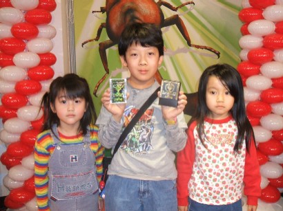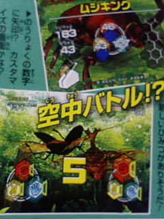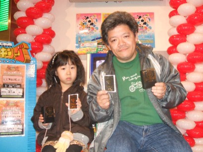 新ムシキングについて,一端が「てれびくん」に載っていました。その話をする前に,あのWHF限定だった「マンディ」が抽選で当たるようです。幼稚園・てれびくん・コロイチ・小学一年生~三年生の6誌あわせて「120名」ということです。各雑誌についている「応募券」をハガキに貼って送る必要があるので,希望される方は是非どれかの雑誌を買って送って下さいね。全国一律で120名ですが,どうせならWHFの開催がなかった地域に厚くして欲しかったですね。さて新ムシキング。カスタマイズによって,グー・チョキ・パーの攻撃力がバラバラになるようです。また「ムシキング」もカスタマイズ次第では「たいりょく」が240になるようですから,「たいりょく」が300になるムシもいるんでしょうね。今回は「たいりょく」のほかに「ぼうぎょ」という数字も出てきます。グーチョキパーの攻撃力のうち,一番低い攻撃力の数値が「ぼうぎょ」の数字になるのかな,という気がします。また各ジャンケンマークの周りに6つのスペースがついていて,おそらくですがカウントが進むと同時にそのスペースが順番にまわって光って行き,勝ったならか,負けたならかは分かりませんが,出したジャンケンマークを押したタイミングで止まったスペースがひとつ光るようです。で,きっと6つのスペースがみんな光ったら,究極ワザを出せるようになるんでしょうね。新ムシキング・・・ちょっと難しくなるようですが,どうなりますやら。さて,この日の大会です。恐竜トリオがホームで3大会ありました。一発目のトリオはうちは何もいいことなし。二発目,強力なパパさん2人とトリオになり,気合入る私(^^;)。息子と嫁さんはこれまたいいとこなしで敗退。私のトリオ,初戦シードでしたが,2回勝って決勝まで行きました。決勝,先発パパさんが相手先発を倒すと,代わった2番手パパさんもチェンジなどを決めながら相手2番手を倒し,相手大将が出てきて,残り少なくなった体力でどう戦うかなと見ていたら・・・チェンジが決まって・・・なんと私の出番がないまま,私のトリオが優勝となりました(^^)。2番手のタカユキさん,先発のタケヒコさんが頑張ってくれたおかげです。ありがとうございました。三発目はランダムトリオ。息子はあいかわらず調子を落としていて活躍できず,嫁さんのトリオに負け。私のトリオは,大将戦になり私の出番だったのですが,攻撃されレッドになったとき,ドレインで相手の体力を半分にしたのですが,相手に雷の力がみなぎり,私はあいこ2発に耐えられない体力でしたので,負け確定となってしまいました。その後あいこ2回でブリッツを凌いだのに,残念です(^^;)。ここで頑張ったのは嫁さんトリオ。決勝まで進みました。決勝は先発の子が相手先発を倒し,代わった嫁さんが相手2番手を倒して大将に交代。大将体力満タン勝負になりましたが,相手を追い込むこちらのママさん。勝ち竜で全爪となったママさん。相手は最後の力も光っていて,食らうときっと終わりでしたが,勇気の一手を出して・・・勝って,嫁さんのトリオ,優勝することができました(^^)。先発チヒロ君も頑張りましたし,大将のミカコさんも頑張りました(シャッター押すタイミングが悪くてすいません ^^;)。あとは息子の復調を待つだけですね・・・。帰りに「甘太郎」に寄って焼肉を食べました。「甘太郎」・・・川崎の「甘太郎」にまた行きたいですね・・・春休みに行こうかな(^^)。