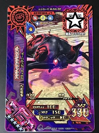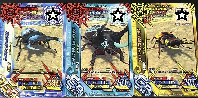 ムシキング今日から始まったマジン化マスターブラックイベントですが、ゲットしたのは・・・アクティオンのノーキラです。毎回言ってますが、マジン化カードは出てきたらほぼ必ずキラ化出来るだけにノーキラのほうがレア。なのでノーキラをゲットして、キラはオクでゲットしました。それから今日から始まったクワガタ復刻イベントもオクで3種ゲットして終了です。 スキャンバトラーズ最終結果は息子は2位、私は11位でした。息子も12000超のスコアを目指してましたが、どこかでもういいやって気になって結果2位。ですがそれを叶えたゆあんさんはきっと攻めたんでしょうね。1位おめでとうございます!これからもお互い頑張りましょう!(^^)