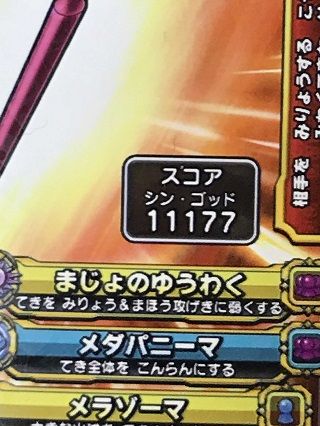 スキャンバトラーズオリンピックでも世界選手権でも、柔道に「体重別」があるように、スキャバトに「盾別スコアアタック」があってもいいんじゃないか?4ボタン盾と3ボタン盾、そして2ボタン盾別にスコアタのスコアを競ってもいいんじゃないか?というのも・・・3ボタン盾(もちろんプラチナ)で私がハイスコア更新となりまして、11177点を叩き出しました。このスコア・・・こういうスコアも3ボタン盾で出せるんだよってことを関東エリア大会で披露したかったですね。2ターン以内討伐ボーナスが無くなって、すっかり脇に追いやられた感のある3ボタン盾ユーザーですが、盾別スコアタがあれば多くのプレイヤーもいまのスキャバトが楽しめるって思うんですけど? ちなみにこのスコア、ガードが8回来たのかな?そして超グレートが8回に、最後はシングル会心。本気ドルマゲスの残体力も、ちょっと残り過ぎかなと思った最後にマジンガの攻撃で会心が出て、100ちょっとの体力になったのもハイスコアに繋がりましたね。マジンガと一緒に使ってるのがオーレンですが、そのオーレンの連打わざでほぼ100%超グレートが出せるというのもハイスコアに繋がってますね(^^)。 あとは息子が12000点台にスコアを伸ばしてくれれば!