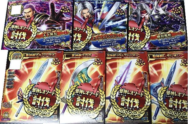 スキャンバトラーズ今日は朝から息子と2人でレオソード討伐印をペッタンペッタンと押してました。初日に極限モンスや主人公SPに討伐印を押せたことで討伐印コンプに向けては随分と楽になってます。 で、SサイズやMサイズに調子よくスタンプを押していたものの、後半からはやっぱりダブりがひどくなりました。おまけにLサイズがなかなか出ないなあと思ってたら・・・闘神レオソードが出て来て、2枚目の討伐印付きとなりました(レオソード自体は4枚目 ^^)。 そして今日はもう引き上げるか・・・と思った最後のプレイにて!SPマデサが出てくれて、これでLサイズは討伐印コンプとなりました。今日はこれマデサ!(笑) あとはMサイズ5枚、Sサイズ4枚に討伐印を押さなければ!何が残っているかは例によって書きませんよ。書いたらマベに出なくされますからね(笑)。