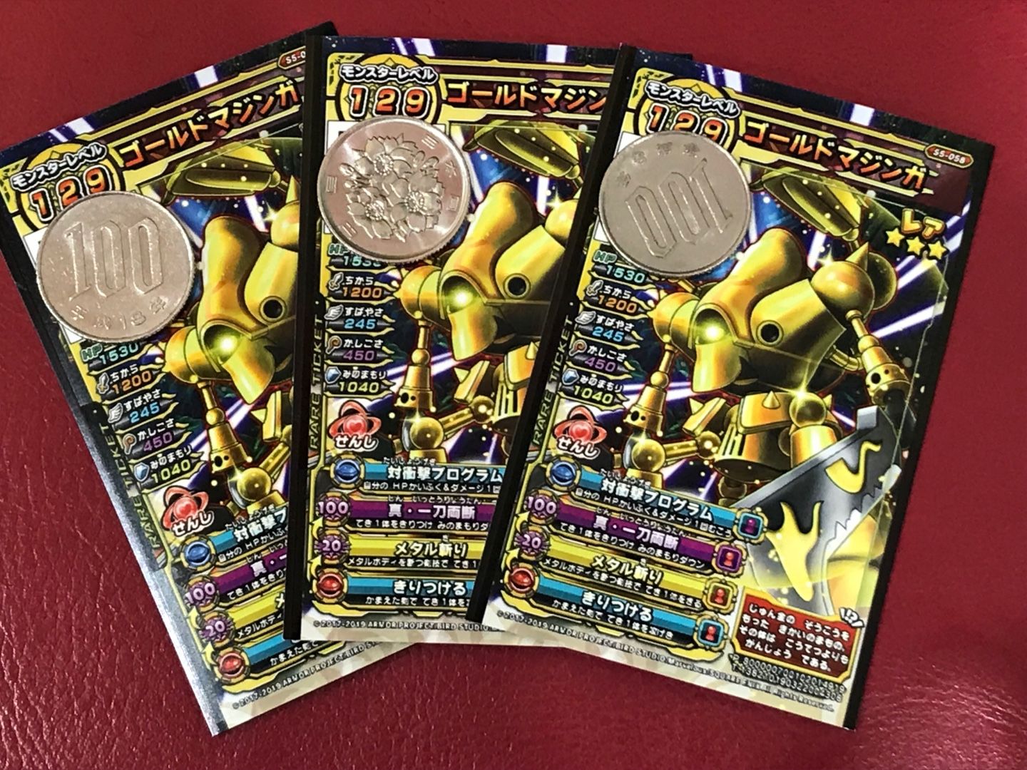 スキャンバトラーズ ここんとこお店から筐体が異常な速さで撤去されているみたいですが、もちろん「スキャンバトラーズの終了」ってことは前提にあると思うも、実のところ筐体のリニューアルのために筐体を引き上げているんじゃないかと勝手に想像しています。 バトスキャ→スキャバトへのPOP変更の感じじゃなく、バトルロードのときにあった筐体デザインの大幅な改造があるのかなと。 ま、名前はスキャンバトルロードで「スキロー」でしょうけど(笑)。 ところで、かくしボス討伐印を集めていて、あとМサイズ3枚でコンプってとこまで来てますが、討伐印収集への意欲はだんだんと失われていってますね。 じゃあなぜかくしボス戦をやっているかというと、「収集欲」というより「コンプ出来たという達成感」を味わうためですね。 実際過去のかくしボスの討伐印を押したチケで、どこに行った?ってのもたくさんありますし(^^;)。 討伐印を集め出したのは、やはり「息子ゴッドが東北エリア大会の決勝ステージでレベチケからSPチケまで、使用全チケットに討伐印を付けて戦った」ってことをその後のエリアでも再現したいって思ったからです。 息子のとなりにいたかっしーにも驚いてもらえたし(笑)。 しかし最近なぜテンションが下がっているかというと・・・イベントモンスターに討伐印を押せないからですよ! 日本最強で使ったギュメイ将軍や、いま使ってるキラゴルドなんかのイベントモンスターには討伐印がつかないため、ステージや大会で使用してもどこか中途半端感が拭えません。 そこでマベさんに提案だけど、イベント期間中はイベントモードではお目当てのモンスターが「出やすい」とし、バトルモードでも「出る場合がある」としてはどうだろうか。 超5弾のイベント「ゴールドマジンガ」や「ゾルデ」で試してみない?(^^)