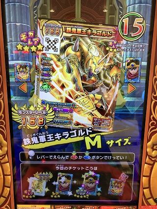 スキャンバトラーズスコチャレですけど・・・もうどうでもよくなっちゃった。だってさ、プレイするとね、1回やったくらいのところで後ろに子供が並んでさ。じゃあ子供の後ろに並んで・・・ってのもね、我が家がプレイしたって、「ちぇっ!全然ガード来ねぇな!まーたゴミチケ増えたよ!面白くねぇ!」ってなるだけだし、そうであるなら楽しんでプレイする子供に、思う存分遊んでもらったほうがいいですよね。だから即そこのお店から退散(^^;)。 なので今日は超絶ハイスコアを出すつもり(息子が)だったんですけど、テキトーなところで止めましたよ。それに、いつも行ってるイオンで爆発物らしきものが見つかった?とかで店に入れなかったし、テンションはガタ落ちで・・・。結局、悶絶ロースコアで終了です。 そんななか、キラゴルドだけはお約束ですし(誰と? 笑)、今日は控えめに1枚ゲットで、26枚目となりました。これは子供が増える時間帯になる前に獲れてよかったです(^^)。