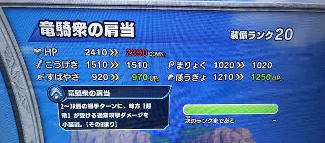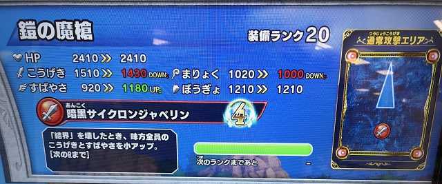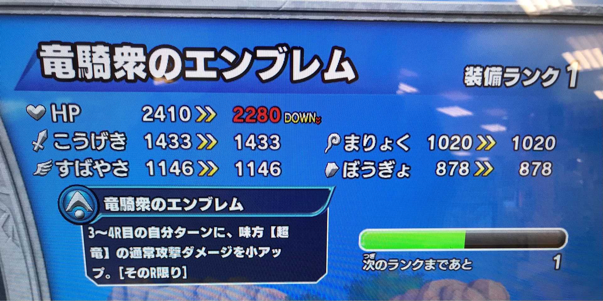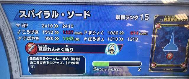 クロスブレイド 週末・・・また土日限定に精を出される方も多いと思いますが、繰り返し繰り返し必殺を撃ってもメタスラたちは綺麗に倒れてくれない・・・ そんな土日限定に疲れたら、強敵ボス・ラーハルトで気持ちよくいいスコアを出して競ってみませんか? ということで、「土日限定じゃないランキング」で競い合う『マスターズカップ』を明日から開催します。 参加してみようかなという方は、ひとつ前の記事を読んでいただき、その記事にレスという形でエントリー願います。 エントリーは4月11日まで受け付けます! こいパパさんやこいちゃんもエントリーしてくださいね~(^^)。 さて、今日はこの装備をMAXにしました。 竜騎衆の肩当が装備ランクMAXになりました! なんかもう最近また目玉アイテムのドロップが極端に悪くなったなか、無理やりMAXにした感じです。 ダメージ小軽減なんてケチな効果じゃなく、「ダメージを無効化」みたいなガツンとくる効果が欲しいですね。 15日から強敵ボス・竜騎衆が始まりますが、そのギガつよ報酬にこのアイテムが含まれないことを祈るのみです(笑)。 で、目玉アイテムのドロップが悪いって話をしましたが・・・ 強敵ボス・ラプソーン戦の「つよい」のドロップがこんな感じ。 こんなドロップなんて、金をドブに捨てているのも同然なんだって、何回言わせれば気が済むんだろうか? どのステージの「つよい」でも虹箱がほぼほぼ出て来ないし、たまに出たと思ったらスパイラル、スパイラル、またスパイラル・・・ 私、勘違いしてましたよ。 ドラゴンキラーとかスパイラルソードとか、通常の半分のドロップでMAXになる装備は、集めるのが大変だからプレイヤーに楽させるつもりでそうしてると思いきや、それって・・・ 「早くMAXにさせてるのは、上の写真のように報酬に何度も登場させ、他の目玉アイテムのドロップを邪魔するため」なんですよね。 呆れるばかりです。 これまでも装備ランクMAX化は大変でしたが、強敵ボス・ラプソーンは、このステージ自体が『超課金ステージ』となっているのに加え、目玉アイテムのドロップが過去最低レベルです。 「鎧の魔槍の盾」なんて、3弾のうちにMAXに出来ないかも。 まあ、でもね・・・装備ランクMAXなんて多くの人は別に狙ってないだろうし、無理して集めるなんて誰もしてないですよね・・・ きっとそれ、正解です(^^;)。