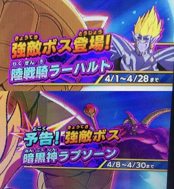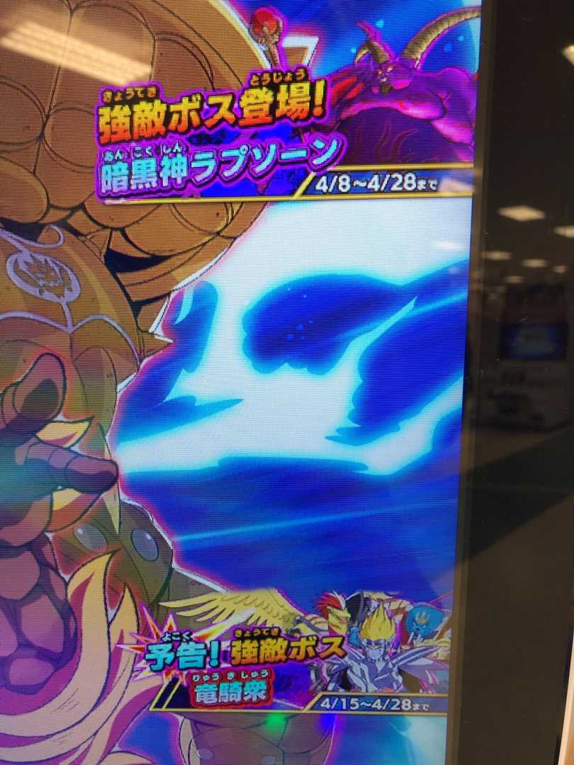 クロスブレイド 他の方の情報を見て・・・ 4月8日はボスラッシュじゃなく、ラプソーン??? ダメっぽいな・・・スコアタはもう『土日限定』に限定ですね。 新装備。 鎧の魔槍はドロップ半分だけど、笠智衆・・・違った「竜騎衆の肩当」がドロップフルかよ。 次弾まで1か月切った状態で出る新装備はドロップ半分にするのがお約束じゃなかったのか? でもって、ラプソーン戦を告知している画面で、期間が4月30日までとなってるけど、これまで強敵ボス戦とか4月28日までとなっていて、「4弾稼働日は4月29日の祝日なのか?」とブルーになってたんだけど(祝日じゃあ満足に連コ出来ないだろうし)、30日までなら4弾稼働日は『5月1日土曜日』ってことか? まあ、土曜日だとしても満足に連コ出来ないのは同じだけど(^^;)。 なんか、30日までとしたラプソーンの画面が間違っているような気がするけどどうなんでしょうね。
