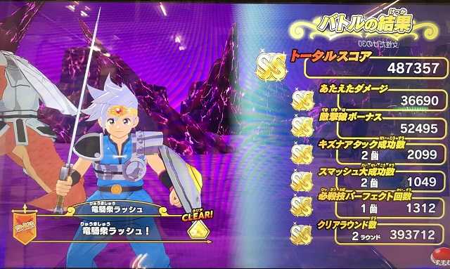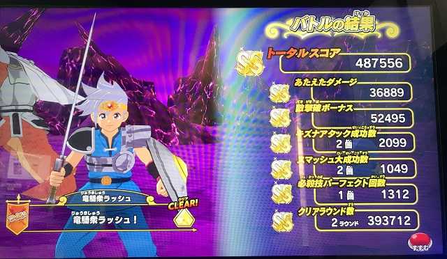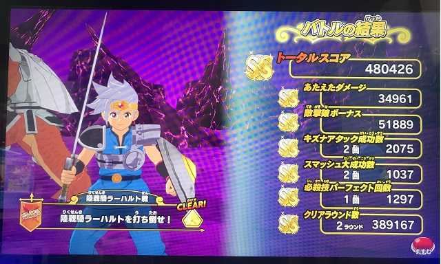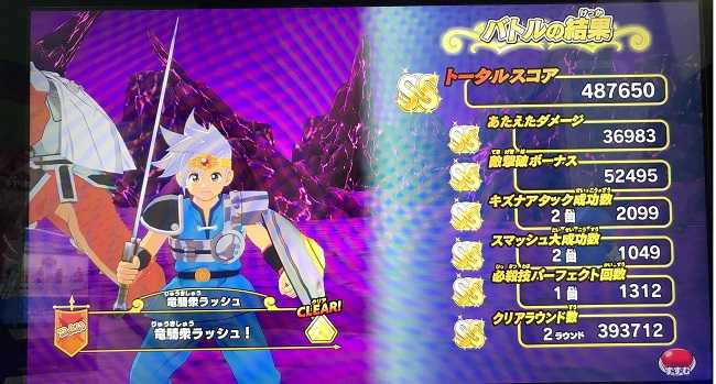 クロスブレイドいのっちやとさん、マスターズカップの賞品到着の連絡ありがとうございました!これで入賞の皆さんに賞品をお届けすることが出来ました。今後も当ブログをよろしくお願いいたします!(^^) で、結局東京や大阪などに緊急事態宣言が出て、ゲーセンってどうなるんですかね。もし広く休業となるなら、やはり4弾稼働開始日を後ろにずらすべきだと思うけど・・・でも予定通りやるんだろうねタカラトミーアーツは。大都市でゲーセンが休業となって、その分収入が減る分、地方のこちら北海道で「土日限定」をプレイしても全く会心が出ないとか、ドロップも虹箱が全然出ないみたいなことが起きるのかな? そして今日は今日で、息子が急きょ就職先から帰ってくるというので急いで家に帰る必要があり、また数回しかプレイ出来ませんでしたが、スコアはこんな感じ。また2体にキラスコをかけて、15連打に15連打という・・・よく48万7千をオーバーしたなって思います(^^)。 ところでここからが本当の「緊急事態宣言」です。私、どうやら左肩を壊しまして、連打が思うように出来なくなった感じです。普段の連打なんて、右手一本でピアノ連打で軽くパーフェクトウィンを取るんですが、やはり強敵ボス「つよい」戦となるとこっちのすばやさの倍以上もある相手とふっとばしバトルをする必要があり、その場合はあの小さいボタンを両手の指で交互に高速連打連打連打・・・それで左の肩を酷使してしまって、連打してる最中に「ウガァァァァッ!」という感じで唸って連打を止めてしまうこともしばしば。明日以降、両手ではプレイ出来ないと思います(^^;)。