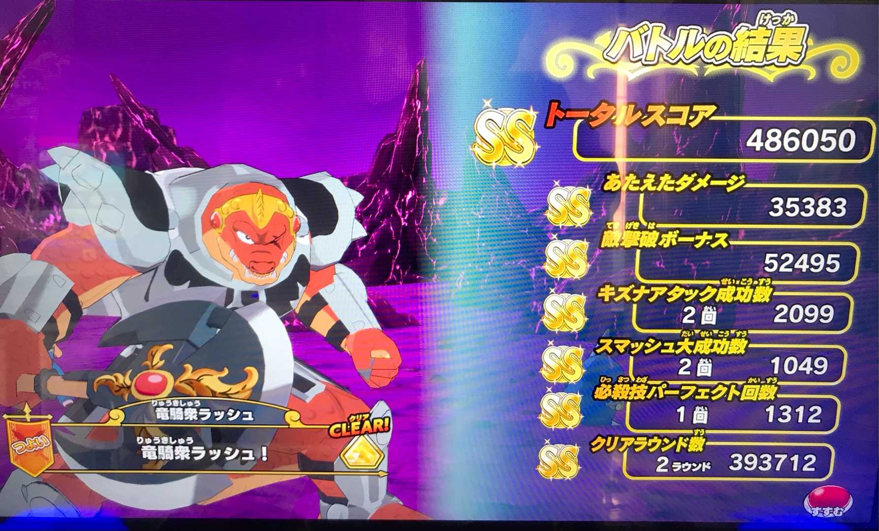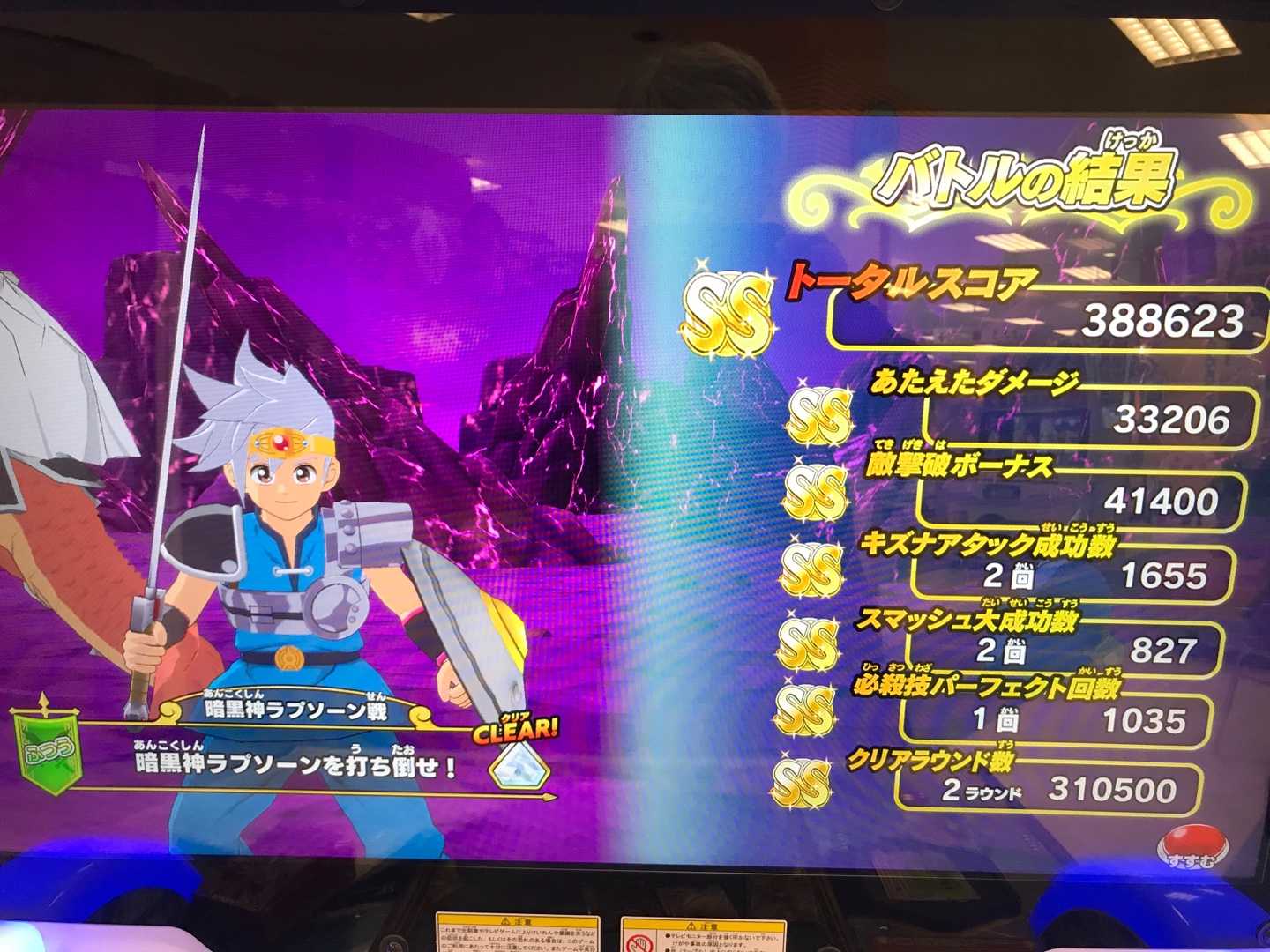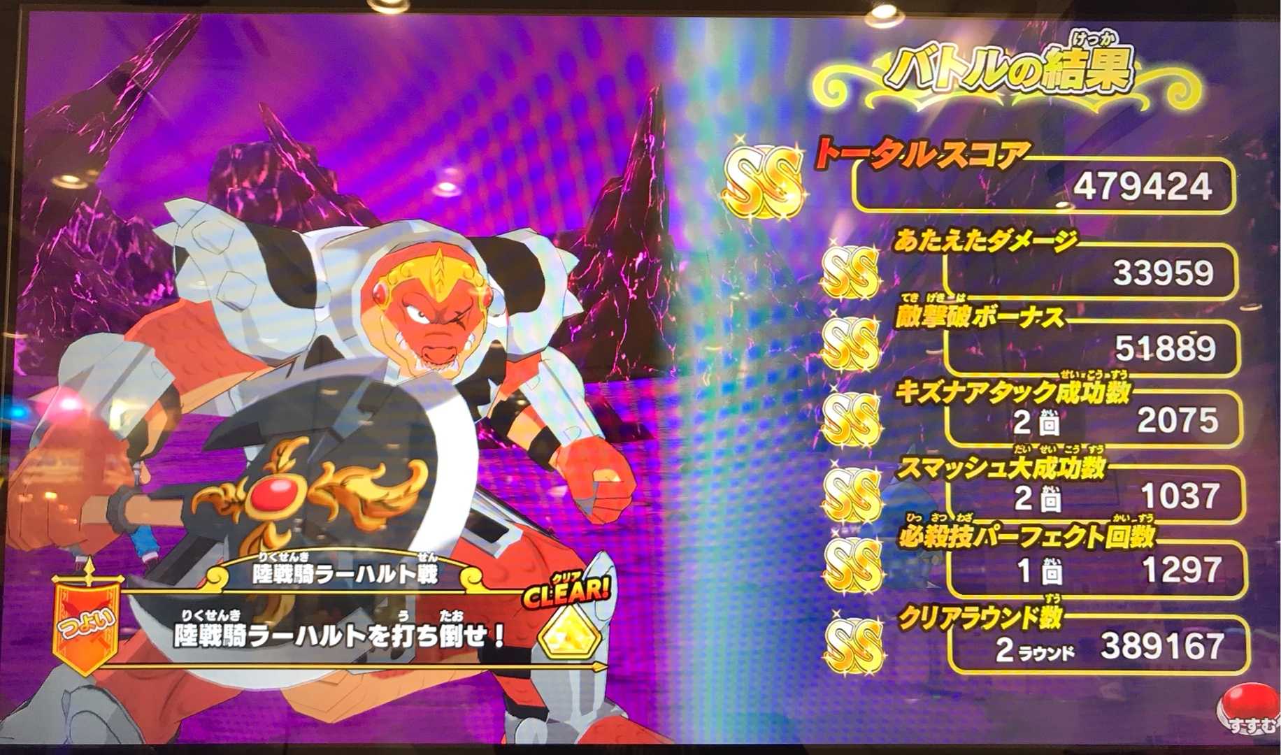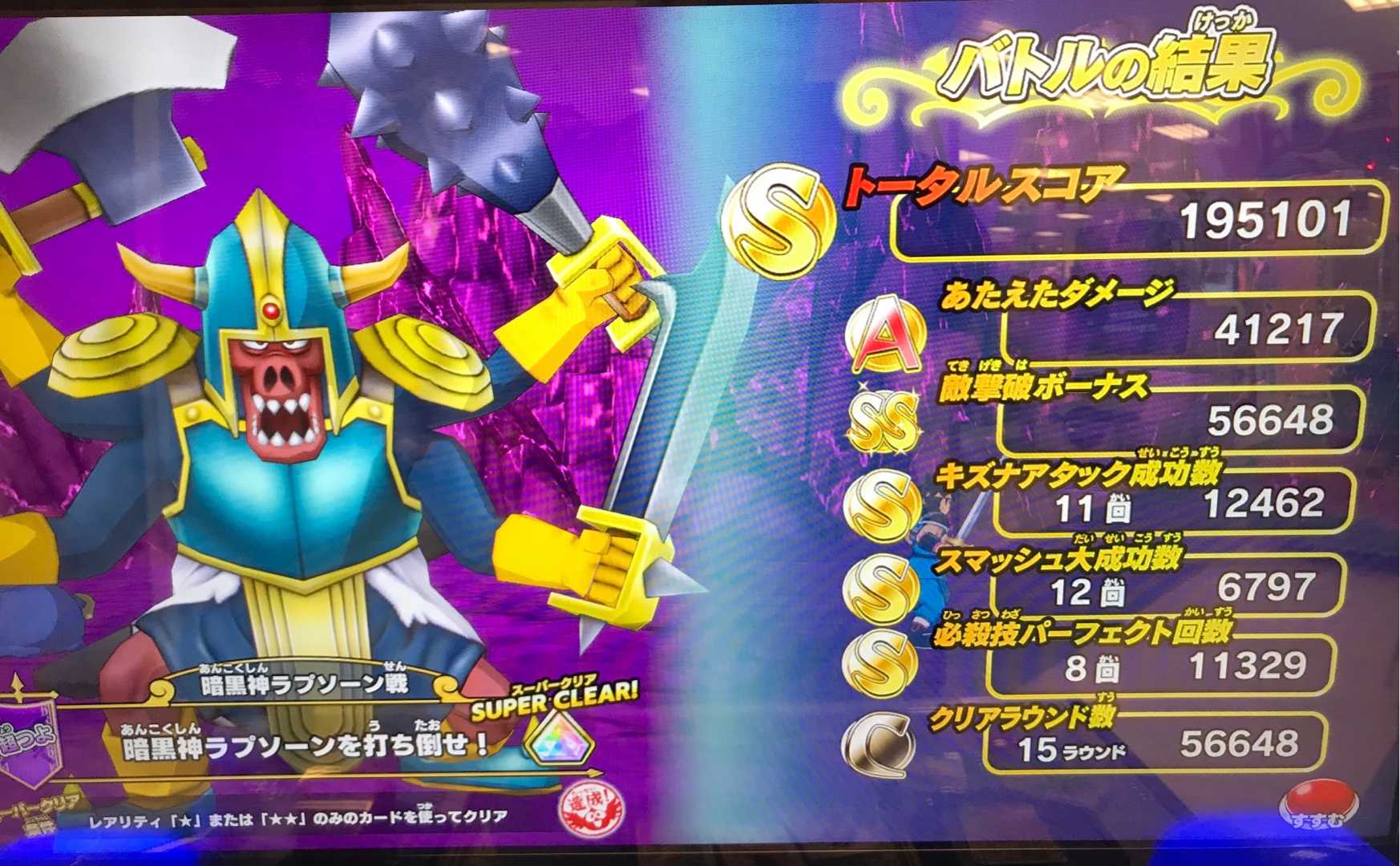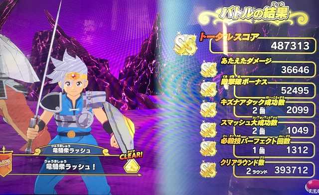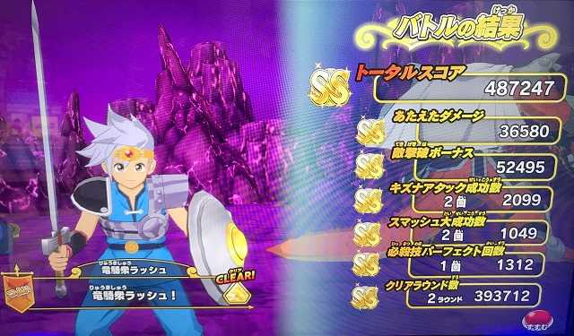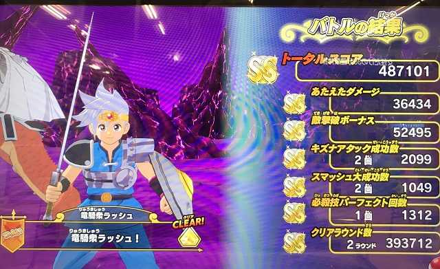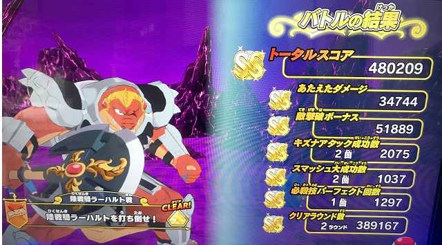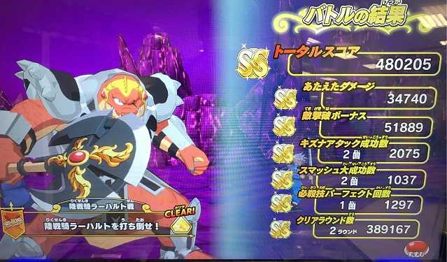 クロスブレイド ラプソーン戦の「つよい」ではスコアが出なくなったので! ラプソーン戦では「ふつう」が一番いいスコアが出るステージになりました笑。 でもまあ、誰もやらないですよね。 必ず虹箱が出る訳じゃないし。 しかし、もしかしたら「つよい」でも100回とかプレイしたら運よく2ラウンド討伐が出来るのかも知れませんが、それでも平日スコアタはラーハルトで充分です。