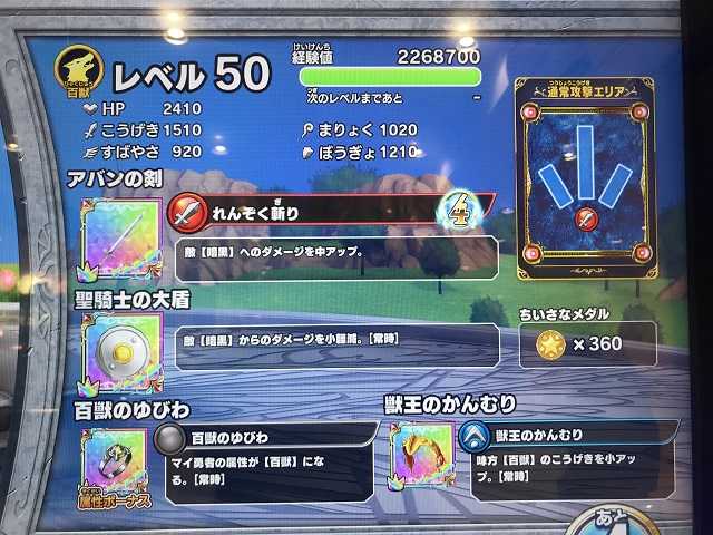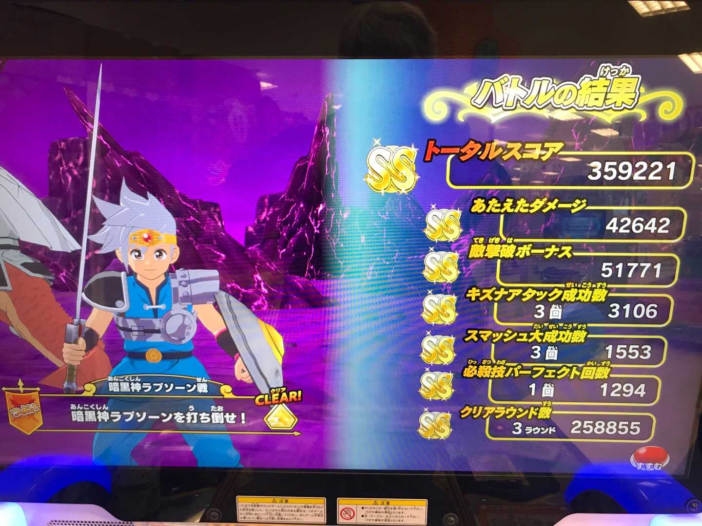 クロスブレイド 4弾初日ではありますが、5弾開始は・・・ 6月24日(木)ですね。 この日は気持ちよく連コ出来るかな? というのも・・・ 朝、お店に着いて、まず両替してるときに筐体に子供たちが・・・ これだから祝日に稼働開始なんて嫌なんだよなあとか思いつつ、別の場所にある筐体に移動して連コ開始・・・この場所は椅子が無くて嫌なんだよなあ。 カードが下から出るたびスクワット状態で拾い上げる・・・なんだか吐きそうになりながらやってました(^^;)。 連コについては、結論から言うとシクレバラン、GRレック、GRヒュンケルパラレルの3枚が出なかったです。 この先のプレイで出るでしょうが、早めにコンプしたいものです。 連コしてて、4弾から金確定箱も出るようになったり経験値がやたら出るようになりましたね。 初日は虹色装備は3種しかなく、それらはMAXまでのドロップ数が通常の半分だけに連コや2人対戦(ポップの衣装ゲット)で結構出て来たことで・・・ 真魔剛竜剣、ベンガーナの剣、竜魔人の盾が全部装備ランクMAXになりました! あとは6日まではホイミまんのランク上げです(^^)。 あ、「ゆがみ」もやらなくちゃ!(新規のゆがみの「ふつう」は4ステージとも終わりました)。 そして、気になるスコアタですが、ダンジョンに「スコアタ専用ステージ」が出て来そうですね。 で、4弾からワンタンキルではスコアは伸びなくなりました。 とにかく、キズナアタックを何回も仕掛け、必殺を数多く撃たないとスコアにならない感じですね。 頭使わなきゃ50位なんてムリですね。 そして確実にレベルやランクが物言うのが今回のスコアタです。 とりあえずこんなスコアからですが・・・ 4弾の最終の強敵ボス戦でこのスコアはどこまで伸びることになるんでしょうかね。 そういえば、強敵ボス戦で、竜騎衆やっても「3弾で竜騎衆スーパークリア済み」だからか4弾でスーパークリア報酬がもらえず、バランやってもこれまた「3弾でバランスーパークリア済み」だからかこれも4弾スーパークリア報酬がもらえませんでした。 そういう仕組みなのかそれとも不具合なのかハッキリさせてくれよ、運営! スーパークリアで竜魔人の盾とかもらえてたらと思うと、少なくとも100円余計に使って他のステージで盾獲りに行ってるんだからどうにかしてもらいたいね。