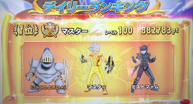 スキャンバトラーズ第2回得点王の集計が終わり、まあ一応確定したランキングが公開されました。しかし今回は前回が僧侶オンリーなったのとほぼ同じく、戦士が総合ランキングを凌駕した感じになりましたね。得点王の終盤、戦士で集中的にプレイした方も多かったのでは?息子は僧侶で上位にランクインしたことでなんとか総合でも10位以内になり、また皆が戦士でプレイした分、魔法使いのスコアが低くなった?こともあって、魔法使いで10位、そして武闘家はそれなりの順位となりました。息子はもちろん戦士のスコアも持っていましたが、「金トロ以外いらない」という意志を貫き、敢えて登録はせず(ギリギリまでウォッチして金トロは無理と判断)、今回は合計4個の金トロが増え、金トロは総計23個となりました。息子が戦士で金トロを逃した結果、これで金トロコンプはいなくなりましたが、金トロの数だけは1位独走という(^^;)。 さてさて、第1回得点王のときにも言いましたが、やはり「ひとつの職業を頑張っただけで総合ランク上位に行くのはおかしいだろう?『総合』なんだから!」ってことで、4つの職業の順位をポイントに置き換えて、そのポイントの合計点で総合ランクを決めたらどうなるか、勝手にやってみました。ポイントはカーレースであるF1(エフワン)でも採用されている、1位25点、2位18点、3位15点、4位12点、5位10点、6位8点、7位6点、8位4点、9位2点、10位1点というような配点です。これで再集計してみると総合ランクはこうなりました(チームゴッド以外は名前の一部を伏せさせていただきました)。1位 ○ア氏 49点2位 ○ーる氏 47点3位 ○ん氏 43点4位 ○ャナスカ氏 40点5位 ゴッド 31点6位 ○んと氏 29点7位 ○ぎねぎ氏 25点8位 ○うき氏 20点9位 ピコたろう 15点9位 ○ウシャ!氏 15点9位 ○イド氏 15点どうですかね。各職業の上位は配点が高いですから、そういう配慮をしながら、かつ複数の職業で頑張ったことに対する評価も正当に出来ていると思いませんか?