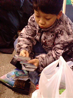開場まで3時間、子どもたちは遊戯王で時間つぶしです。