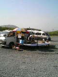 以前より走ってみたかったルートを今日ソロで行って来ました。朝10時自宅を出発自宅から15分ほどにある吉無田高原です。子供達段ボールを持ってきて、この草スキー場で滑っていました。(子供達が大きくなりここ2.3年は滑っていません..)そうそう、行き先を説明しなければ..今回のツーリングは、平家落武者伝説で有名な熊本県南部の五木村へ行って来ました。コースは、県道57号線を山都町へ行き、国道445号線を旧矢部町へ向かって国道218号線を美里町方面へ。旧砥用村へ入ったら、再び国道445号線にてひたすら南下し五木村へ向かって行くおもいっきり山間コースです。この橋は霊台橋といって、1847年に作られた国の重要文化財に指定されている石橋です。私も小学校の社会科見学以来でした。ここ旧砥用村を含め美里町には有名な石橋が数多くあります。(有名なのは通潤橋です。)旧砥用町から国道445号線へ。一路南下し五木村へ向かいます。しかし......ここから悲惨なツーリングが始まるとは.....まだ気づいていませんでした(^^;)な.なんと......都会にお住まいの方は国道は片側2車線の立派な道路とお思いでしょうが、九州の国道は片側1車線が大半です。しかし....この国道は..車の離合も難しい道幅しかありません。まるで村道です....私のイントルーダーはアメリカンですから...取り回しが....と思いつつ、ひたすら上り坂をゆるーく上っていきました(ツーリングマップに1ないし1.5車線と書いてあったナー..)ひたすら道幅の狭い国道を上ること約30分。二本杉峠の展望台に到着しました。ツーリングマップによると、『阿蘇.天草.雲仙を一望』と書いてあるんですが、黄砂のせいでかすんであまり良い風景を見れませんでした(T_T)二本杉峠を後にし、走ること15分。『梅の木轟公園吊り橋』との標識があったので、寄ることに。高所恐怖症の私には、遠目で吊り橋を見ることは出来ても、橋を渡ることはしない主義です。吊り橋を渡っている人はいませんでしたが、風でゆらゆらと揺れていて..そそくさと出発!吊り橋を後にし、ひたすら南下すること約40分。五木村へ入ってきました。ここまで来ると車幅は広くなり、片側1車線の走りやすい道路となります。写真の川は、熊本ではダム建設反対で有名な川辺川です。ヤマメが有名なのか、走っている最中でもヤマメ料理の看板がいたるところで見られました。ここから10キロ下流にダムの建設予定地がありますが、こんなに綺麗な清流を見ながらツーリング出来なくなるかと思うと複雑な気持ちです。そんなこんなで南下すること約30分で目的地の『道の駅五木』に到着です。ここ五木村は、『落武者伝説』(壇ノ浦の戦いで負けた平家の武士達がこの地方に落ち延びてきた話)や『五木の子守歌』が有名です。所用時間は2時間30分でした。道の駅のそば屋さんやレストランが観光客で満杯でしたので、売店で弁当とお茶を購入し外のベンチで昼食を取りました。田舎風の煮付けが美味でした。美里町から五木村へのマップです。もう少し自宅を早く出れば、五家荘の『平家の里』やこの近くのキャンプ場をパトロール出来たのですが、夕方4時半に娘を学校に迎えに行く事となってますので休憩1時間後、道の駅を出発いたしました。道の駅を出て自宅へ向けて走ること30分。な.なんと....警備員が立って道路をふさいでいます。事情を聞くと、道路工事の為時間帯通行止めをしているとのこと。午後3時以降じゃないと通行できません。今の時間は14時20分.......五木村方面へ戻って違う道を....と思い警備員に尋ねると、「その道も時間帯通行止めで通れません....」仕方なく、バイクを止めれて座れるところを探しにちょいと南下しました(T_T)道幅が狭いので、なかなかバイクを止めるところが無いまま南下すること約10分。日陰で広い場所を見つけたので、通行止め解除15時まで休憩することに。娘を迎えに行く時間に遅れるかもしれないので、娘の携帯へメールをと...携帯を見ると...な.なんと圏外に(T_T) ヤバイ......でもどうしょうもできない..ひたすら15時解除を待つことにしました。早めに休憩場所を出発し、通行止めしている所へ行くと渋滞となっていました。この後15時に通行止め解除となり、一路自宅へ向かい娘のヘルメットを積んで小学校へお迎えにいきました。(ギリギリセーフでした)上の写真は、五木村の道の駅で買ったおみやげです。バイクのタンクバックに入るギリギリのサイズです。お茶も羊羹も、昨日カミサンが夜「羊羹食べながらお茶のみたーい」と言っていたので、それを実行いたしました。本当は、秋の紅葉ツーリングにしたいと思っていたのですが、来月中旬に久留米へ単身赴任となったので、いわば前倒しに実行いたしました。全走行距離208.7キロ 全所用時間6時間30分反省......ツーリングは計画して行いましょう。