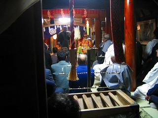 なんじゃいこのタイトルって感じですが、まんまです。夜に神様を移動したんですよ。部落の神社を改修してたんですね。で、以前日記にも書いたと思いますが、工事中は神社から公民館に神様を移してたんです。で旦那が天狗になっていたと・・・。今回は神様が神社に戻るわけですね~。今回も旦那さん天狗です。天狗は神様の次に偉いらしく座るのも神様の前にでんと座ってました。って書いても雲雀の文章じゃわからねぇです。ってことで近日中に写真upしますね。御神体に光を当てちゃいけないらしく御神体を撮った写真はないですが