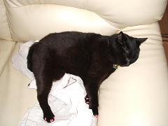 今日は地震がすごかったですよね。ちょうど仕事中でその上7Fでかなりゆれて船酔いみたいでした。落雷といい、日本の天災は絶え間なく続きますよね。なんとかしてほしいものです。ちょうど地震のときちびは、トイレ中だったらしく、あわてて飛び出してきたらしいです。かなりの小心者ですから(笑)ただ、出てくるときに大きなくしゃみをして鼻水を壁にべっちゃりやったみたいなんです。おばあちゃんのこってりと怒られて、夕方までご飯も食べずにふて寝をしていたらしいです。もう元気ですけどね。夜にはすっかりグロッキーでまたソファーで寝てましたよ。今日の猫ちゃんミケっぽいですが、外国産の猫ちゃんです。ご飯中しつれいしました~(笑)明日は、朝病院で、その後友人会う予定。楽しみだよん♪