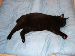 昨日は、久しぶりに仕事が午後当番でした~とても更新する元気がなかったので、さかのぼって書いてます!夜PM10:00までなので、つかれちゃいました。その上今日は、AM8:30からなので、寝る時間がなくて・・。睡眠をちゃんととらないと、ぶっ倒れるタイプなので、今日は眠くて仕方がありません。昨日ののせる予定だったちびです。結構むし暑かったんので、前に買っておいてひんやりシートですひんやりするにゃ気持ちいいにゃ♪ホームセンターで見つけました。結構使っていらっしゃる方も多いとは思います。これでちびも快適!?かな?