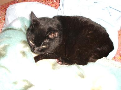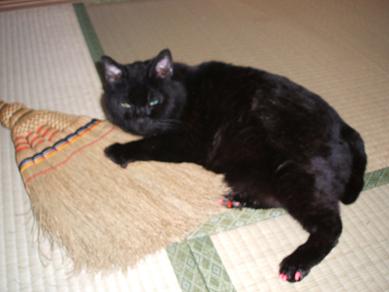 ちびのお気に入りはこれ!ふつうの『ほうき』です。ここ1,2週間はすっかりここがお気に入りのようで、一日一回はここでお寝むしてます。でずーっとこのまというわけにはいかないので(だってほうきですよ。普段は掃除につかってるんですから・・)何か変わりになるものと今度ホームセンターで探してきます!実は今日ははとっても大変だったんです。義父が具合が悪くなったのです。もともと心臓が悪くて、仕事もしてないのですが、『今日阪急祭りだからお買い物に行って来る』って言って出かけたまま帰ってこなくて。携帯を持っていないのでどこに居るのかわからないのよね。心配してたら、電話が入って、『今マックの前の公衆電話のところにいる。具合が悪くて帰れない』っていうので、すぐに車で迎えに行きました。ダンナはすでにビールを杯飲んでるし。まあ大事には至らなかったけど、入院がいやだから病院にはいかないって頑固さんなの。家族は大変です。明日具合が悪いようならすぐに病院へ行かせようとは思っていますが・・・。血圧が極端に低いんですよ。今の医療では血圧を上げる薬ってないんですって。いろいろ研究しているんだから早く有効な薬が見つかることを期待したいです。やっぱりやっぱり携帯電話を持たせたほうがいいかもしれないので明日義父に話をしようと思います。