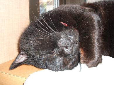 元気とはいえなんとなくちびの調子がいつもと違うので今日は病院へつれてきました。結果、「夏ばて」このごろずーっとあつかったもんね。おばあちゃんが日中あまりクーラーすきじゃないとかであまりいれなかったからかな?かなり良くなってたので、栄養剤の注射とお薬を飲んで本日は終わり。すっかり今頃は爆睡中です。お薬がきいてるのかな?きょうのにゃんこ毛並みの長いねこちゃんなのに顔だけ短髪。変わってますよね。