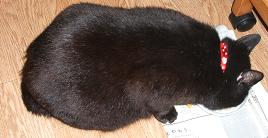 お友達がこの間おとまりしたんだけど、そのお礼と『ホタテ』を頂きました。 すごいです!りっぱです!生きてます・・・ってあたりまえか(笑) 今日はバター焼きとお刺身にしました。まだあるので氷で冷やしておいて、明日も何か作ります!ありがとうダンナのお友達様!来月ごちそうするね(*^_^*)ちなみに・・・ホタテの缶詰がだいすきな『ちび』焼きたてのホタテの貝柱をもらって、ご満悦でした(笑)今頃おばあちゃんのお部屋で爆睡中だろうな・・本日のちびです。昨日、夕方ちびがいないっておばあちゃんが大騒ぎしていたので、ちびの捜索が始まりました(笑)探していると、ダイニングテーブルと電話の台が近くにあるんですけど、その脇の死角に爆睡中でした。 もう心配かけるんだから・・・。