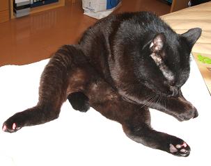 今日は仕事が午後当番だったので先ほど帰ってきました!つかれちゃいましたね。さすがに・・・。で明日はまた普通に朝が早いので早く寝なければ・・・。ちびの面白い行動を見つけました♪あごをなでてあげるといつも気持ちよさげにするんですが、足を注目!!足をがあがってきたぞ~足カキカキでも足がとどいてないぞ~(笑)あごを掻いてあげると、自然にちびの足が上がってきて、届いてないのに、掻いたふりをするんです(笑) かわいいんですよ~最初見たときは家族で大爆笑でした(=^w^)ぷぷっ!