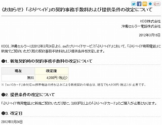 SBの有料化で感じたイヤな予感通り、auも後追いして来ましたね~「ぷりペイド」契約事務手数料について「MNP前提でプリペイド契約は許さじ」と言う感じ...契約するなら23日までに