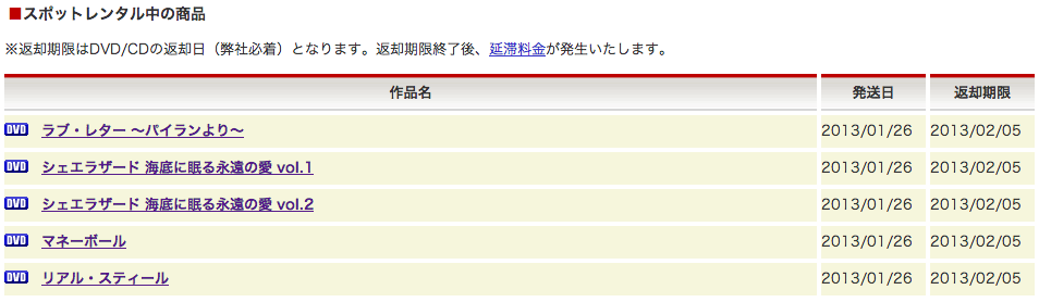 本体はちゃんと守られているようだから、カバーの目的は充分果たしているけど何気に悲しい...いつも机に上に置いておけば良いのだけど、つい床に立て掛けて置いちゃうので何処かにぶつけたみたい。そう言えば、液晶画面が汚れたのを放置していたら、アルコールで拭いても汚れ(油分)が上手くとれない。すぐに拭き取るべきですね〜相変わらず「Skitch」は不調で、「EVERNOTE」の挙動も不審...アプリの頻繁なアップグレードも良し悪しだ。◆1年前の自分観たいDVDがあると楽天レンタルの「レンタルリスト」に記録。そのレンタルリストの上位5番を近所にあるGEOの店員さんに見せ、80円レンタルしているタイトルがあれば借りる。無いタイトルなら仕方ないから後日楽天レンタルで注文する。このパターンが一番安上がりで、時間も節約できる◆ちなみに、その前年先日COSTCOのレジで精算する際に、年会費をCOSTCOのクレジットカードで引き落としする手続きをしてもらった。今までは更新料4,200円は現金で支払う仕組みだったが、クレジットカードで自動引落出来るようになったらしい。初めは便利だと思ったけど、COSTCOに数ヶ月行けないこともあるので勝手に更新されちゃうよりも、契約は気にしないで必要な時にコストコに行き、契約切れだったらその時に更新(新規契約?)する方がお得だったかも...更新作業の手間と、更新と新規契約の金額差がポイントですね〜