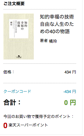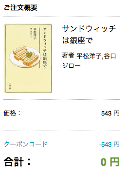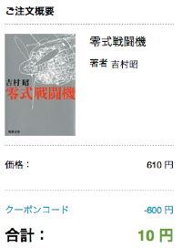 今日も600円分の電子書籍用クーポンをいただきました大体、週に一回は送られてきてます。ありがたいです。ただ、サイトの出来があまり良くないのか欲しい本が探し難い(そもそも電子化されていないのかも知れないが)ので、もう少しAmazon見習って欲しいな。