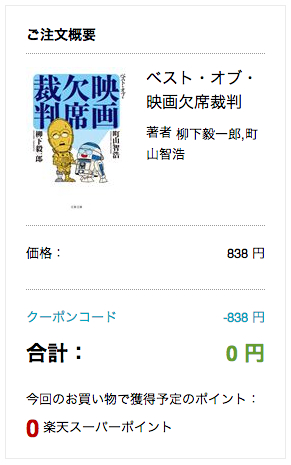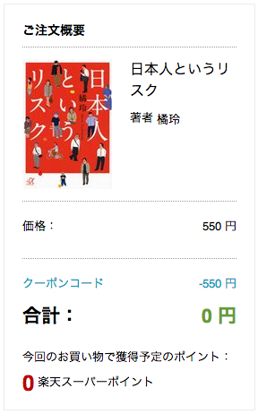 2日限定の600円クーポンで、昨日買った?(貰った)のは橘玲さんの本結構ファンです◆1年前の自分この土日は雨模様の予報...今日は休日出勤だし、明日も9時前には新宿駅に付いていなきゃならないから少々憂鬱だ。頑張ろう。◆ちなみに、その前年楽天レンタルの無料クーポンで新作が借りられるのはあまりないな〜新作なら2枚でも良いので、いつもの旧作5枚と定期的に混ぜてクーポンを配ってもらえると大変嬉しいのだけど