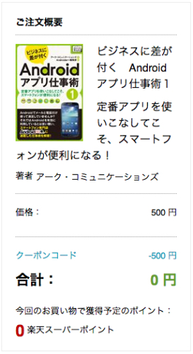 本当かどうか分からないけど、アプリケーションエラーが発生して迷惑かけたからと500円分のクーポンが届いたので、サクッと購入自分のお金を使ってはなかなか買わないような本だけど、日常的にAndroid端末は使うので未知のアプリとか今まで知らなかった使い方が身についたらラッキーです。