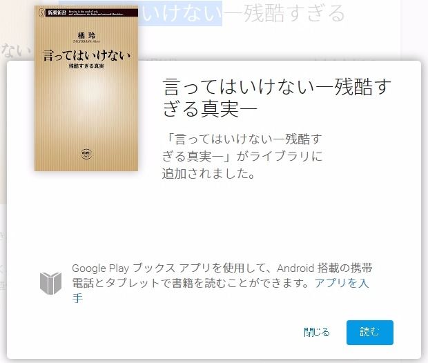 Google先生からクリスマスプレゼントの名目で、100円分のGoogle Play クレジットが送られてきた100円という少額なので、放置/失効しちゃおうかと思ったけど、Google Playの書籍コーナーを見ていてちょっと前から気になっていた本が半額セールだったので、300円ほど追加して買ってみた。何度も読む本なんて滅多にないから、図書館で借りて読めば良いのだけど、なかなか人気があるらしくて予約しても数ヶ月待ちになりそう。という訳で,「300円程度の出費なら許容範囲でしょう。」と自己弁護しつつ...後悔しないようしっかり早めに読まないとね