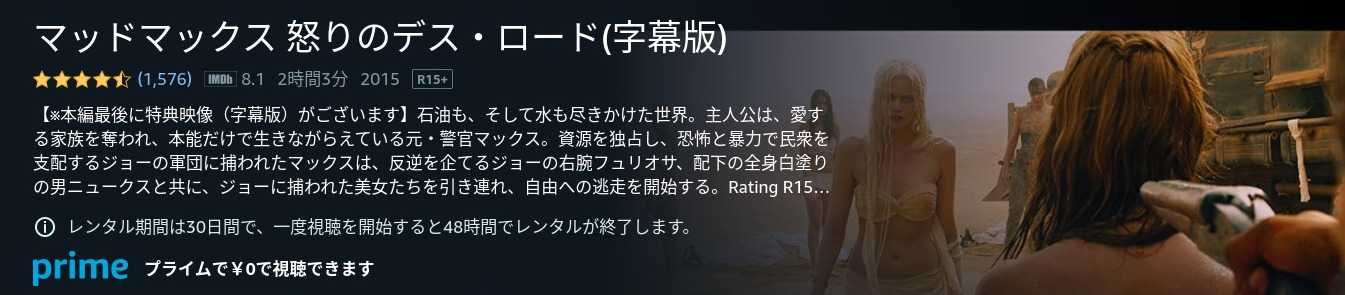 いつでも観られると思うけど、結果「ウォッチ・リスト」ばかり肥大化し、挙げ句にPrime Videoでは期限が過ぎて再生出来なくなる始末。お正月で特にすることもないから、毎日1作品を観るようにしている。今日観たのは、「マッド・マックス 怒りのデス・ロード」人気シリーズのせいか、暴力的なシーンも意外とマイルド。安心して最後まで観られる娯楽作品でした何日まで観続けられることやら..
