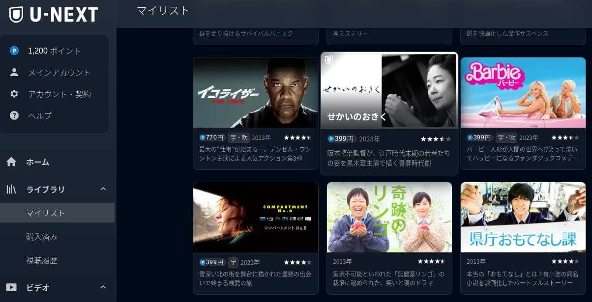 5ヶ月間の無料お試し中のy.u mobile月に20GB使える上に、最初に1200ポイント貰えたから、無料でお試しさせてもらっているのが申し訳ないレベルで感謝無料で貰えた1200ポイントは10GBのデータチャージに使おうと思っていたのだけど、U-NEXTで観られるコンテンツに映画館で観そびれた作品が多く見つかったので、動画視聴に当てることにした。・コンパートメントNo.6・Barbie・The Witch/魔女ー増殖ーどれも399ポイントで観られるので、貰った1200ポイントで間に合います。U-NEXTはコンテンツの充実さ、料金的にもPrime Videoに負けてないと、ちょっと見直しました〜