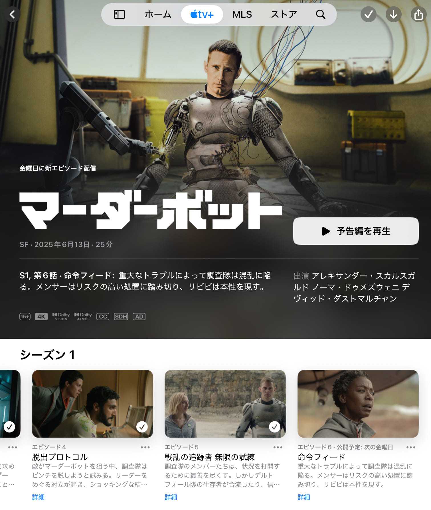 「マーダーボット」は、結構ハマる。今日公開されたシーズン1のエピソード5を観てから一旦解約これからもっと面白くなりそうだけど、毎週いちエピソードごと公開されるのを待っていたら、お金が無くなっちゃう。出来たら、完結?してから再契約して一気見する一緒にサブスク契約したApple MusicとApple Arcadeはほとんど利用しなかったから気楽に解約できたんだけど...