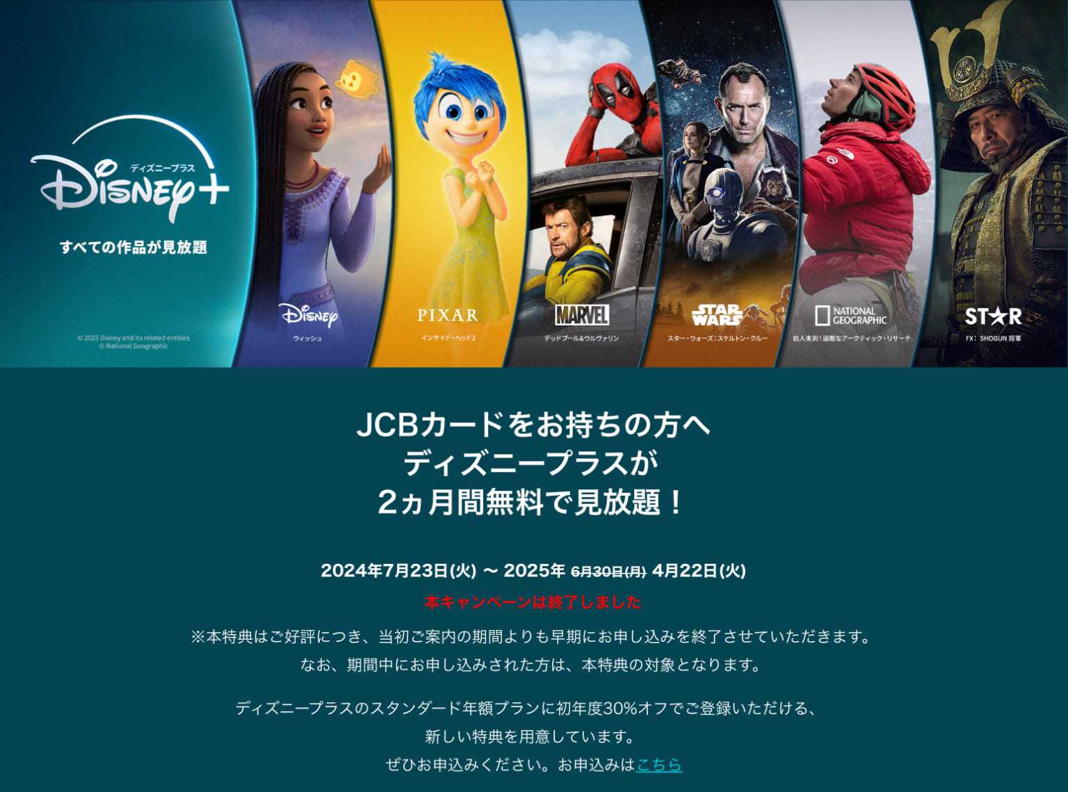 JCBカードのキャンペーン?で、「Disney+」を2ヶ月間無料お試しする筈だったのに...キャンペーンが4月22日で早期終了してたもう無料お試しはやってなくて、会費割引のキャンペーンだけじゃ少々弱いなぁiPhone15買ってApple TV+などサブスクが3ヶ月?お試し出来たから、その後で「Disney+」をお試しする予定だったのにもうすぐお試し期間終了するけど、「マーダーボット」は面白そうだから課金に少々悩む...